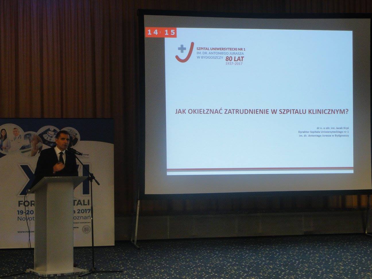 Pracownicy naszego Szpitala również, co cieszy, czynnie uczestniczyli w tym wydarzeniu, poruszając podczas swoich prezentacji bieżące problemy z różnych zakresów działalności szpitala. Swoje wystąpienia wygłosili: dr n. med. Tomasz Ozorowski - Klebsiella Pneumonia NDM – alertem dla polskich środowisk medycznych oraz Szpitalny dress code – jak poprzez politykę ubraniową możemy wpłynąć na zdrowie pacjentów; dr hab. prof. UM Paweł Bogdański - Dobre praktyki żywienia w szpitalach; dr hab. med. Szczepan Cofta - Jakiego lekarza ma przygotować podczas studiów szpital kliniczny, p. Agnieszka-Seredyńska-Kowalik Kondycja szpitali klinicznych a ustawa o sposobie ustalania najniższego wynagrodzenia zasadniczego pracowników wykonujących zawody medyczne zatrudnionych